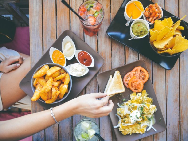 Maria was running late for work and she did not have time for a proper lunch. She wanted to have a quick meal so she ran fast to a quick service restaurant to eat fast food.